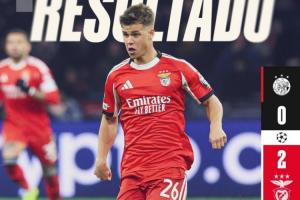 体育资讯11月26日讯 凌晨欧冠联赛阶段,本菲卡客场2-0战胜阿贾克斯,终于获得本赛季欧冠首胜。